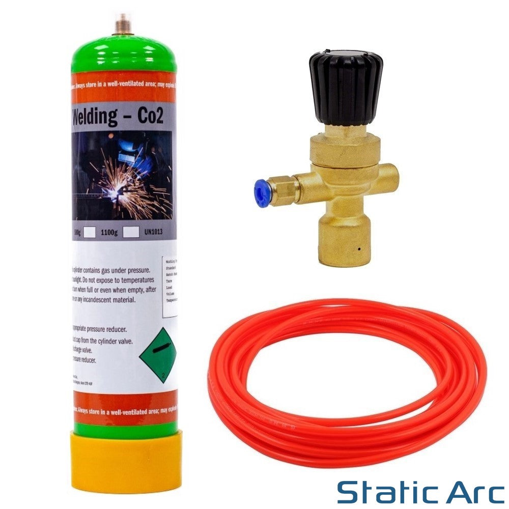 This complete gas kit has everything you need to get started with MIG/TIG welding (gas bottle, regulator and hose). The disposable gas bottle is a cheaper alternative to industrial size bottles. Ideal for small scale welding jobs.